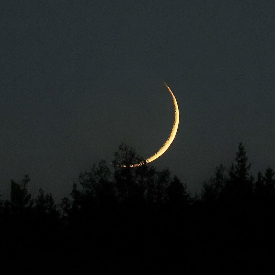 En liten månskärva, upplyst av solen.