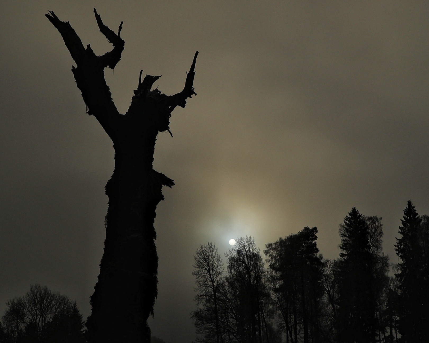 Solen tvekar bakom dimman Foto: Lola Gren